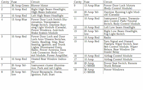 2002 Chrysler Sebring Fuse Box Diagram Chrysler Vanfuse Boxke Light And Cluster Panel Problem